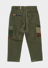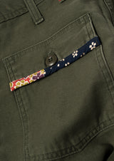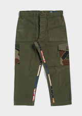 We've added cargo pockets to these utility (fatigue) trousers, along with a signature A&R Fun Strip in contrast cotton fabrics as well as trimming along the back pocket. We tapered each pair for a more modern fit.