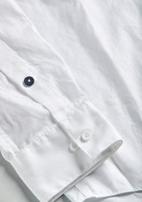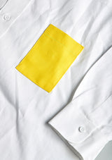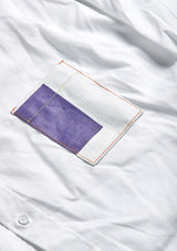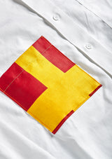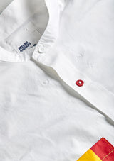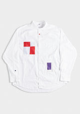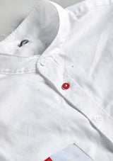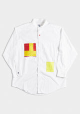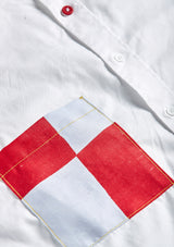 This selection of white shirts are reimagined with shirt pockets made from antique maritime fabrics. Some buttons replaced with a contrast color and a locker hook in back.