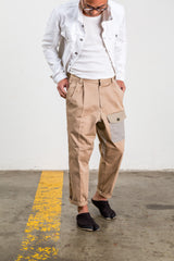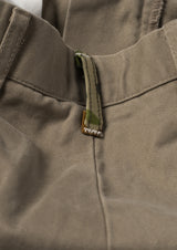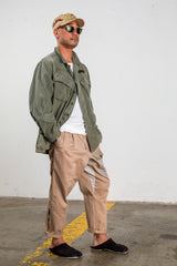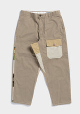 Taking inspiration from the era of the birth of the chino, we've reimagined these pieces with travel in mind. An added a front cargo pocket offers a place for safekeeping a map (or smartphone), a reconstructed fit with the addition of a gusset for flexibility and mobility, and a signature A&R Fun Strip in leftover military camouflage along the right outer seam to stand out (or blend in). Offered in a mix of flat-front and pleated, in various khaki tones. All pieces in this style are between 28" and 30" in length.